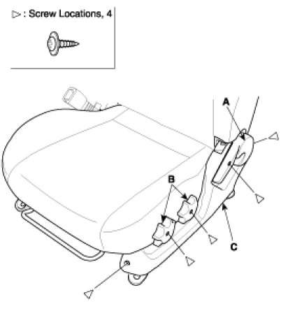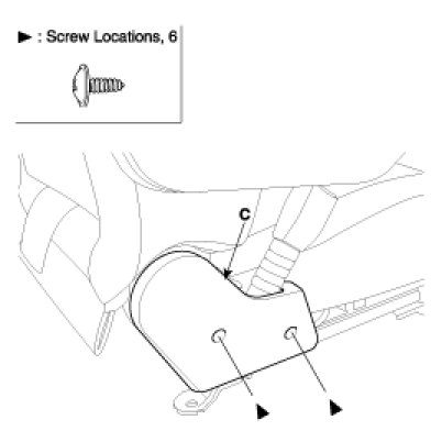 Loosen the recliner mounting screw and clip, then remove the recliner cover(C).