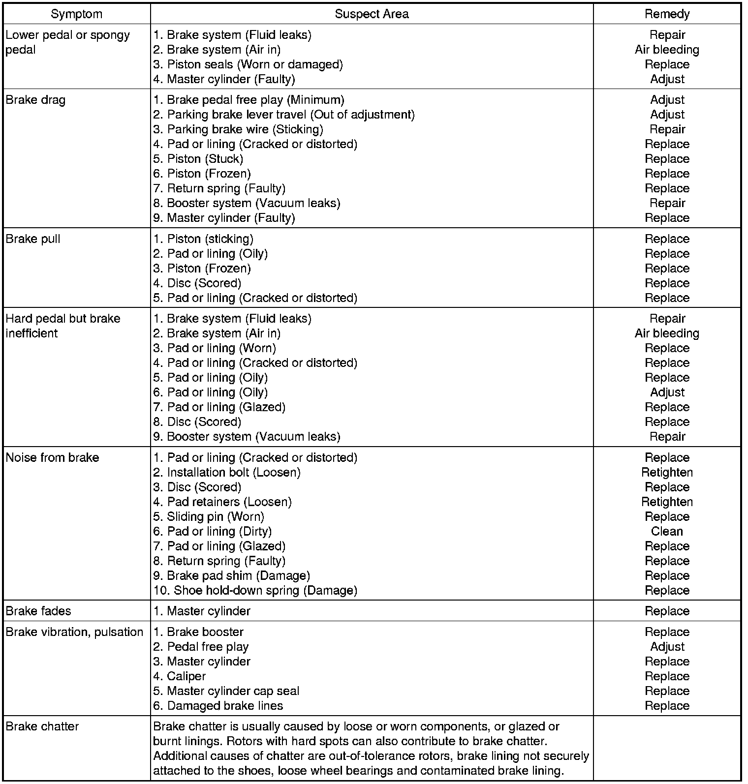 TROUBLESHOOTINGPROBLEM SYMPTOMS TABLEUse the table below to help you find the cause of the problem. The numbers indicate the priority of the like cause of the problem. Check each part in order. If necessary, replace these parts.