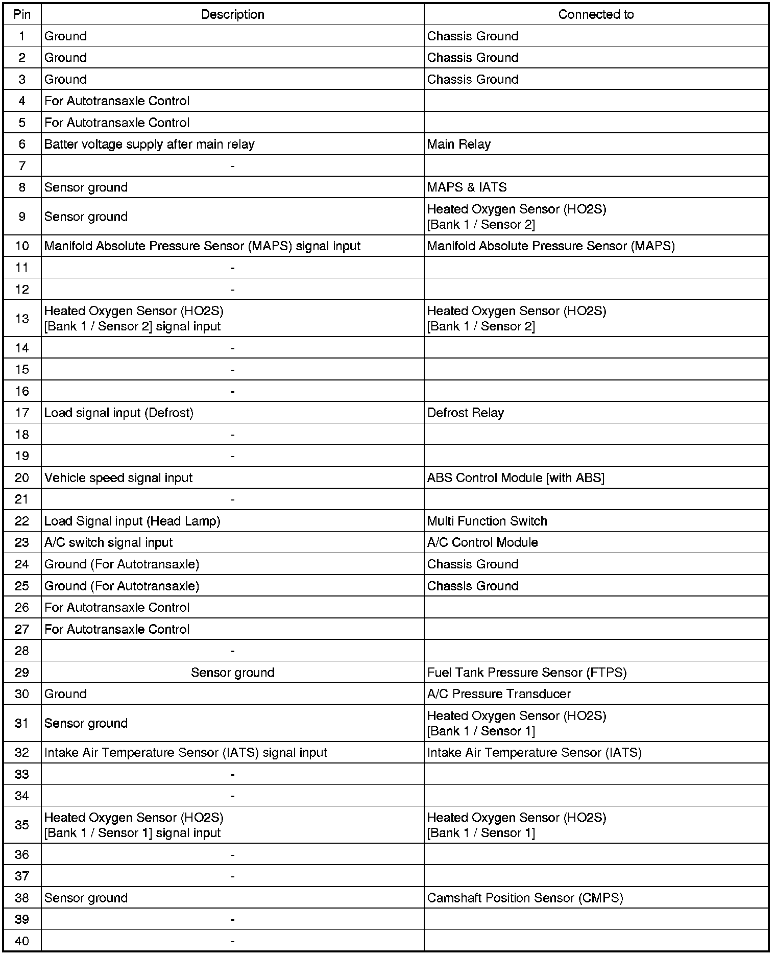 2. PCM TERMINAL FUNCTION (A/T)