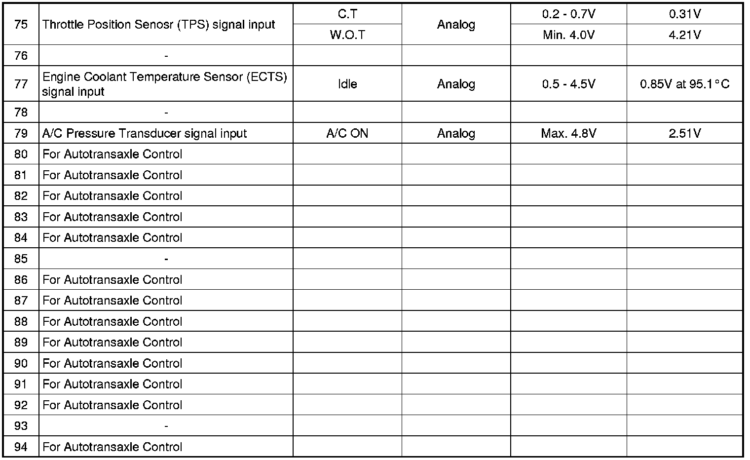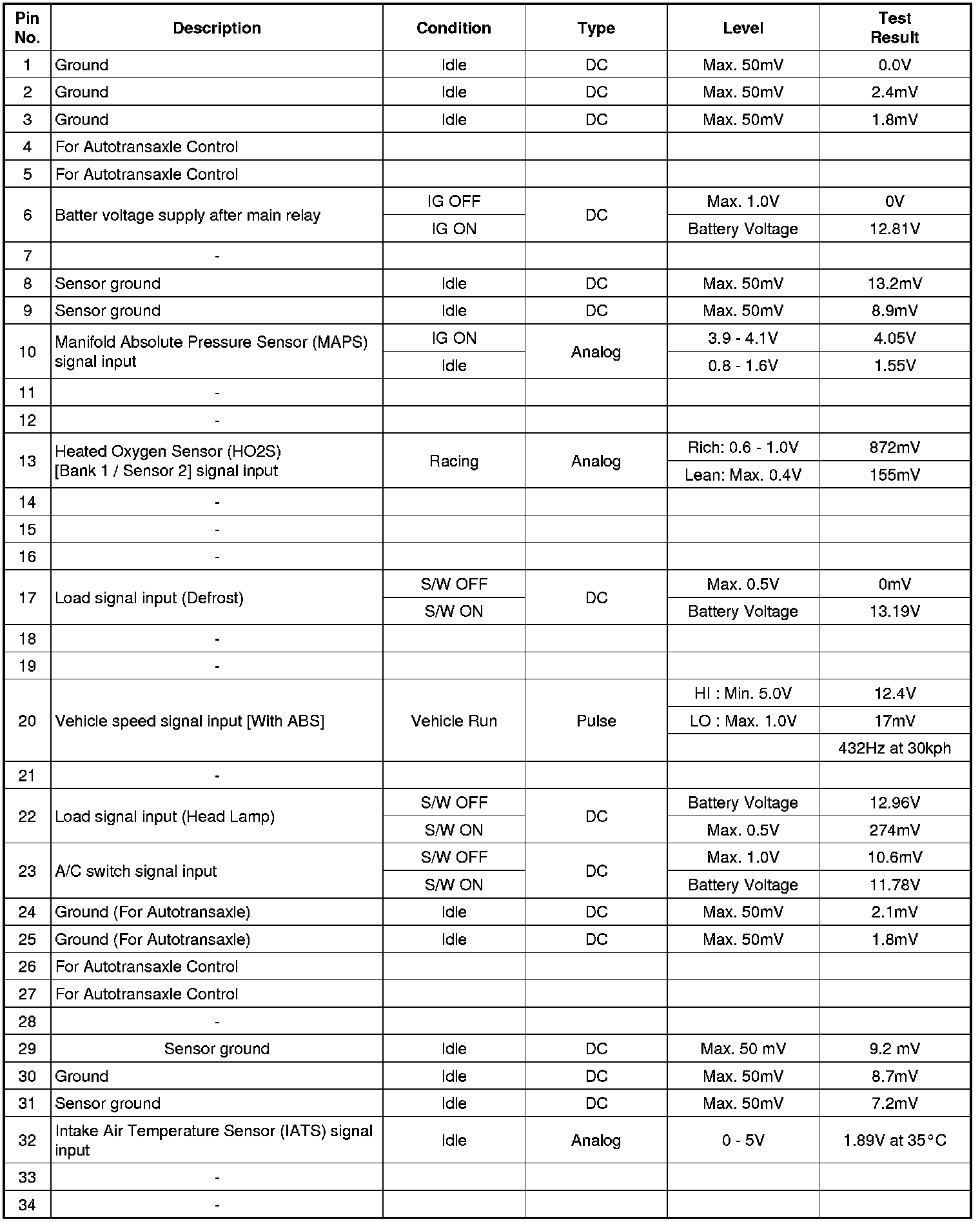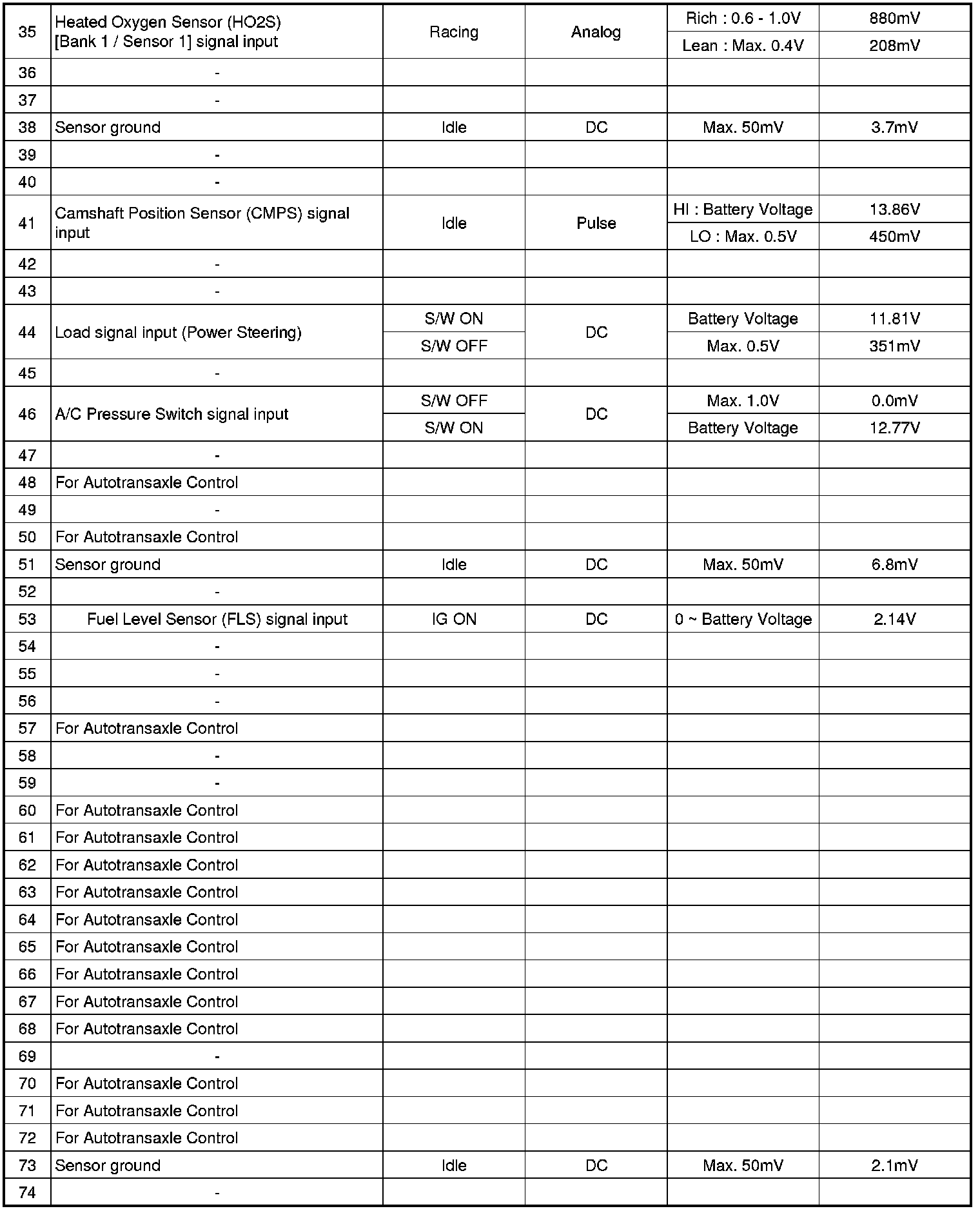 3. PCM TERMINAL IN/OUT SIGNAL (A/T)