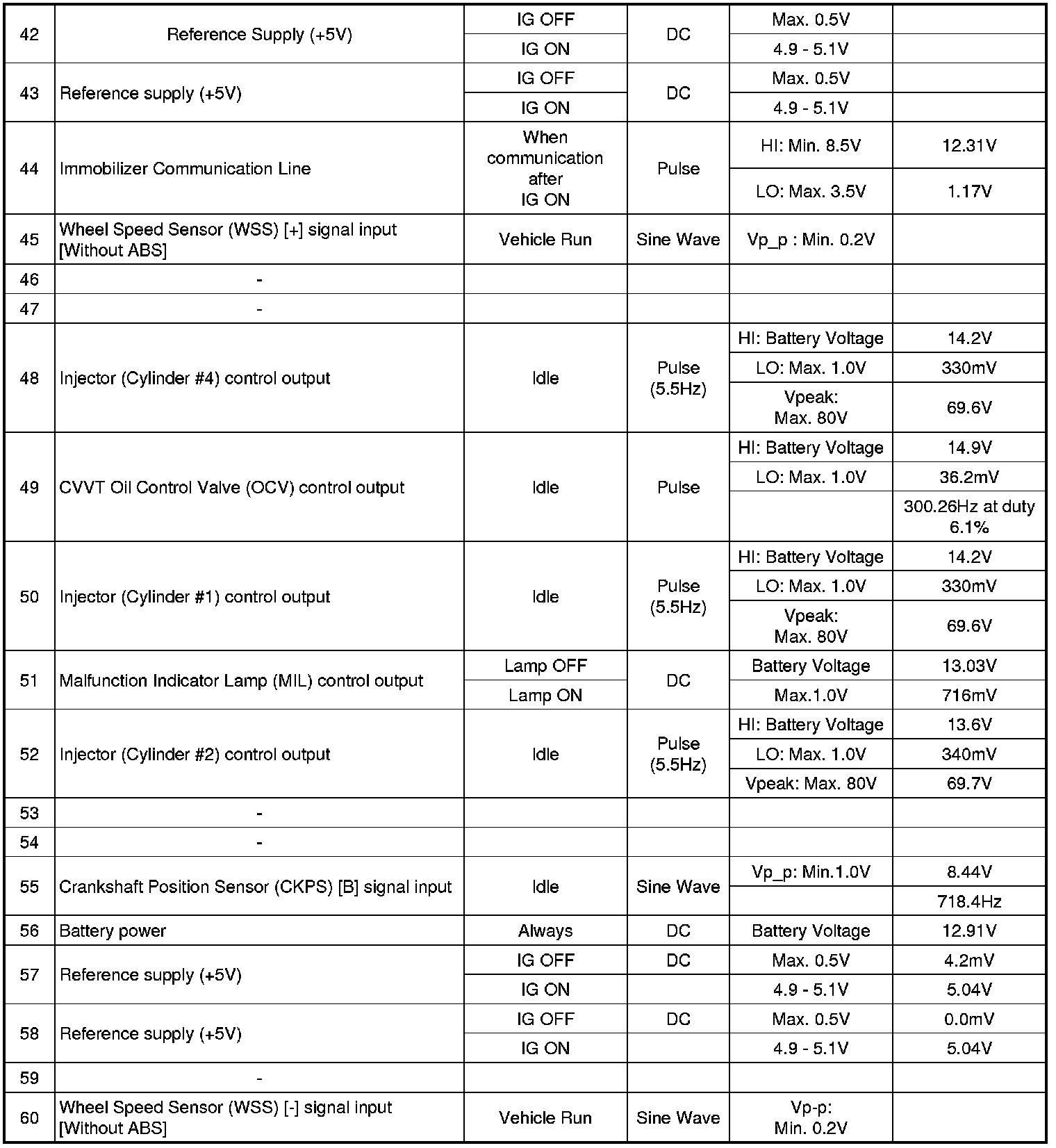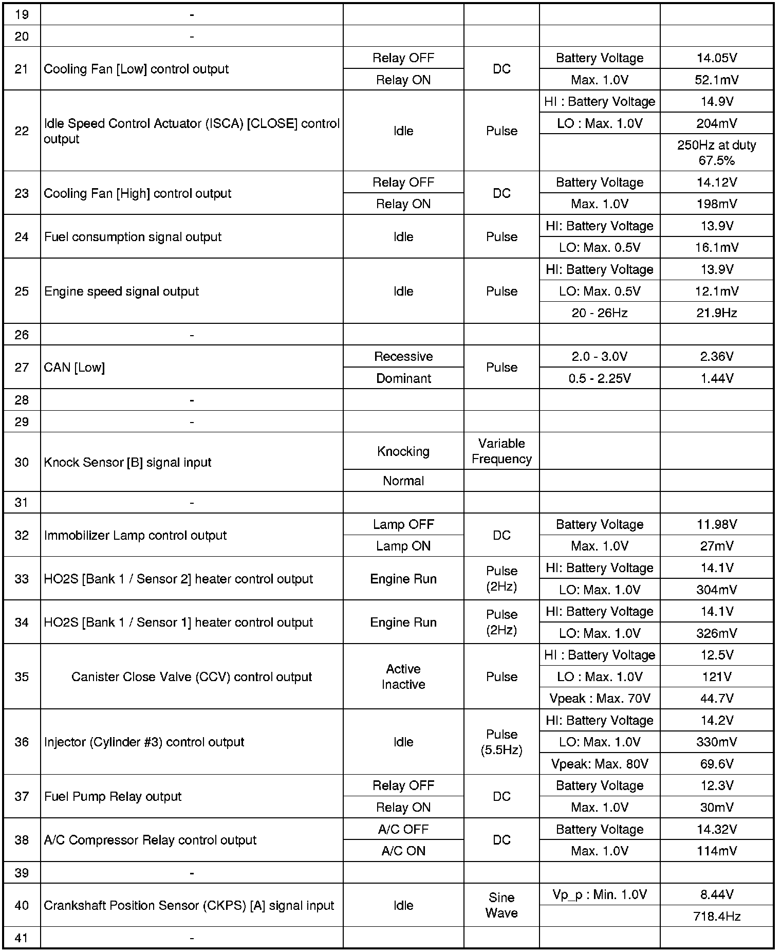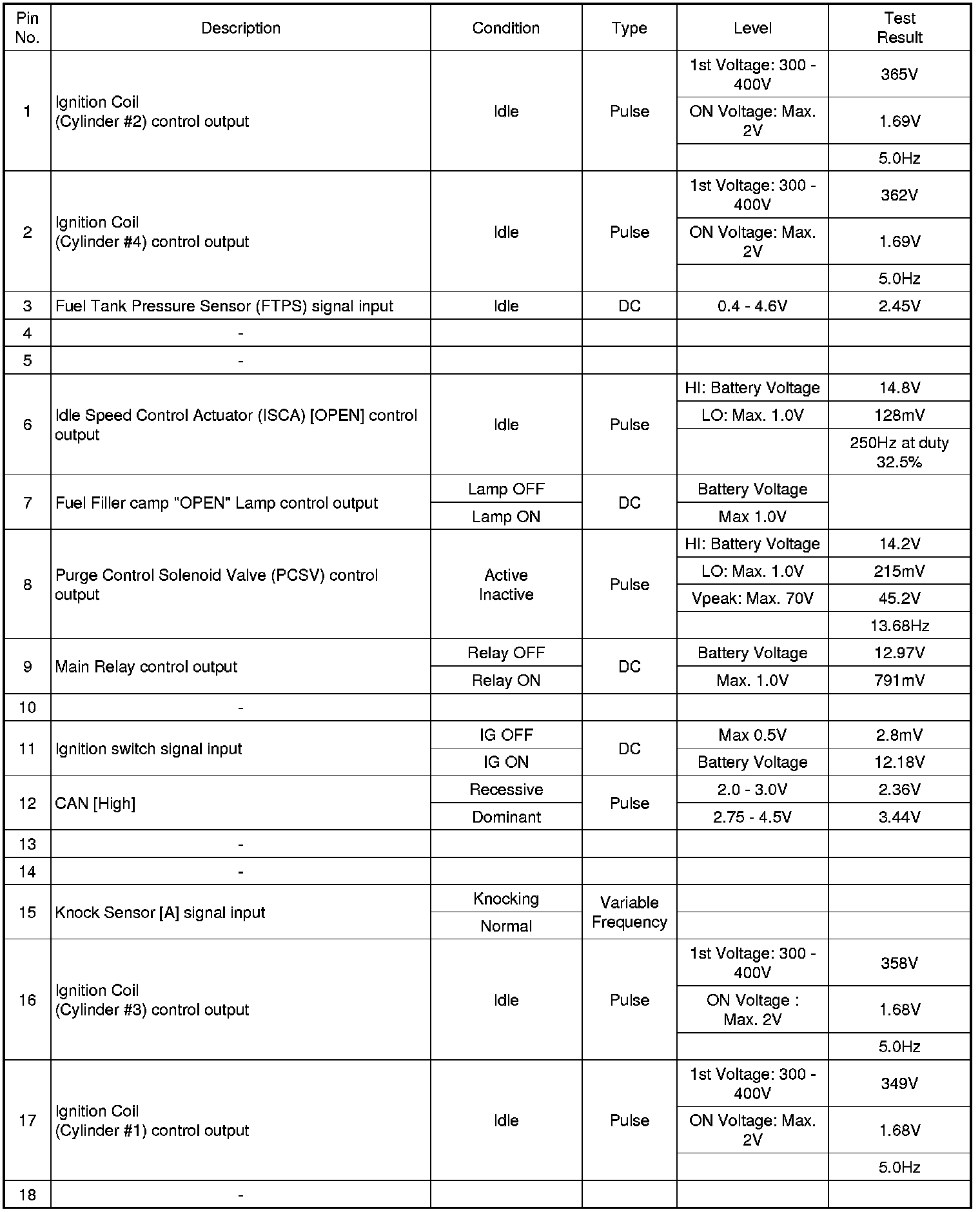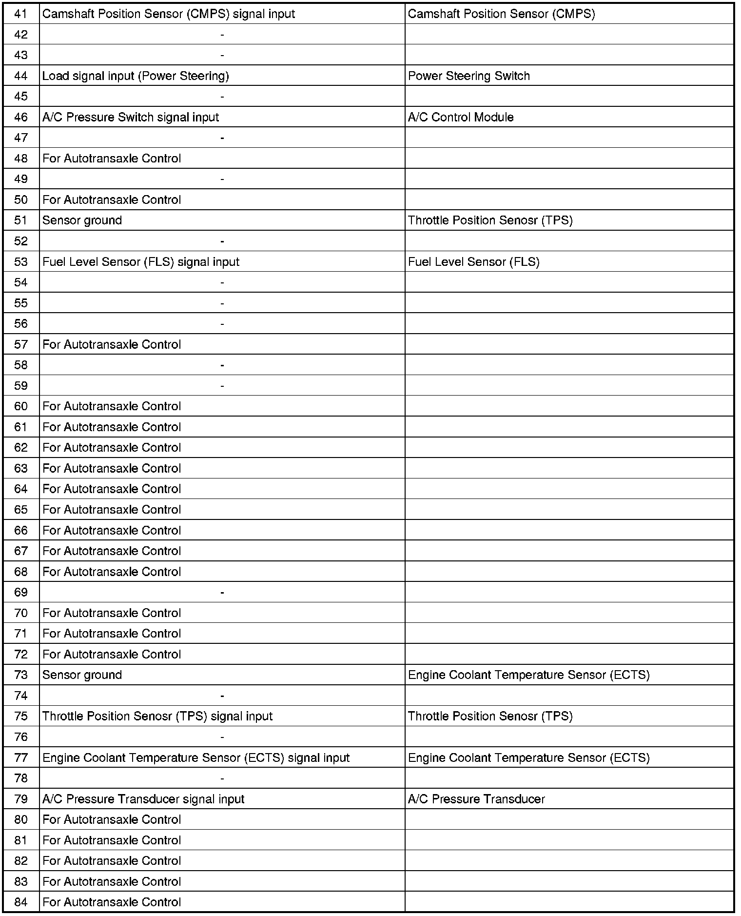 3. PCM TERMINAL IN/OUT SIGNAL (A/T)
