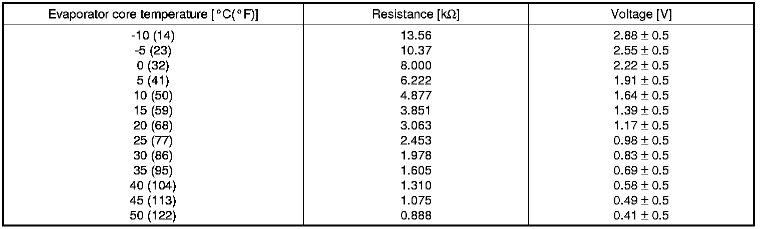 4. If the measured resistance is not specification, substitute with a known-good evaporator temperature sensor and check for proper operation.