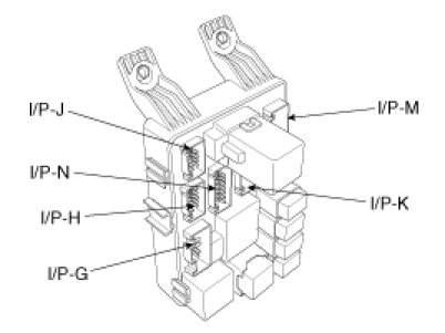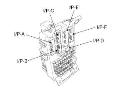 4. There should be continuity between the No.1 in the I/P-D and No.6 terminal in the I/P-M when power and ground are connected to the No.10 terminal in the I/P-M and No.6 terminal in the I/P-G.