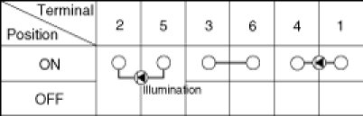 Using an ohmmeter, inspection the continuity between the terminals after removing to the switch connector.