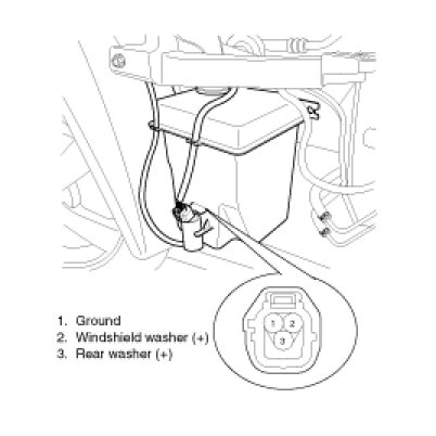 Connect positive (+) and negative (-) battery cables to terminals 3 and 1 respectively to see that the washer motor runs and water is pumped.