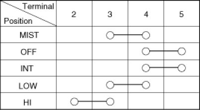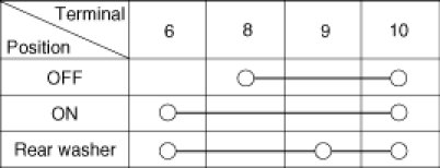 With the multi function switch in each position, make sure that continuity exists between the terminals below. If continuity is not as specified, replace the multi-function switch.