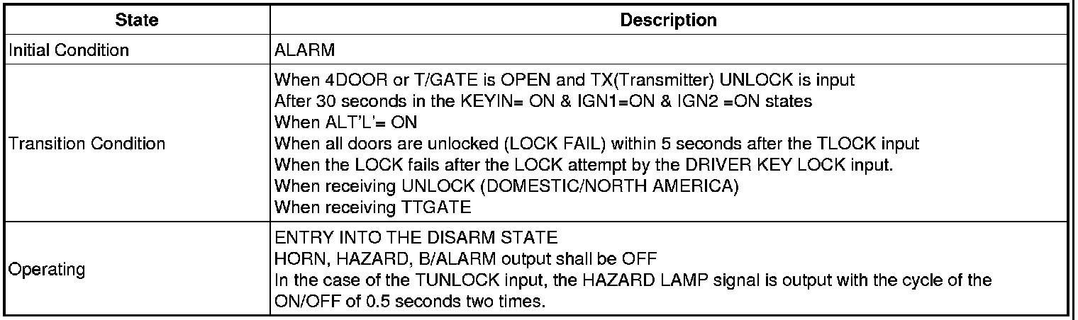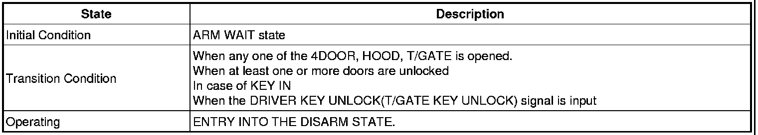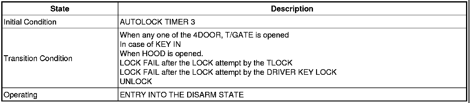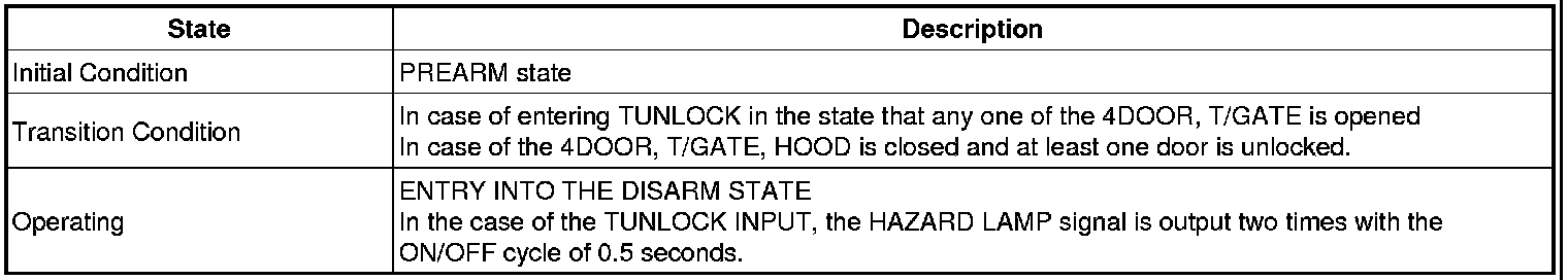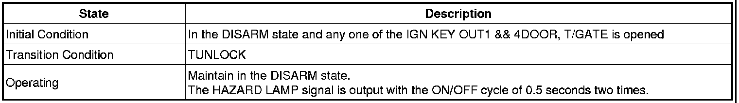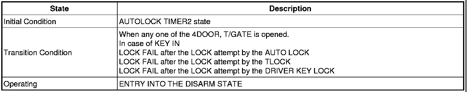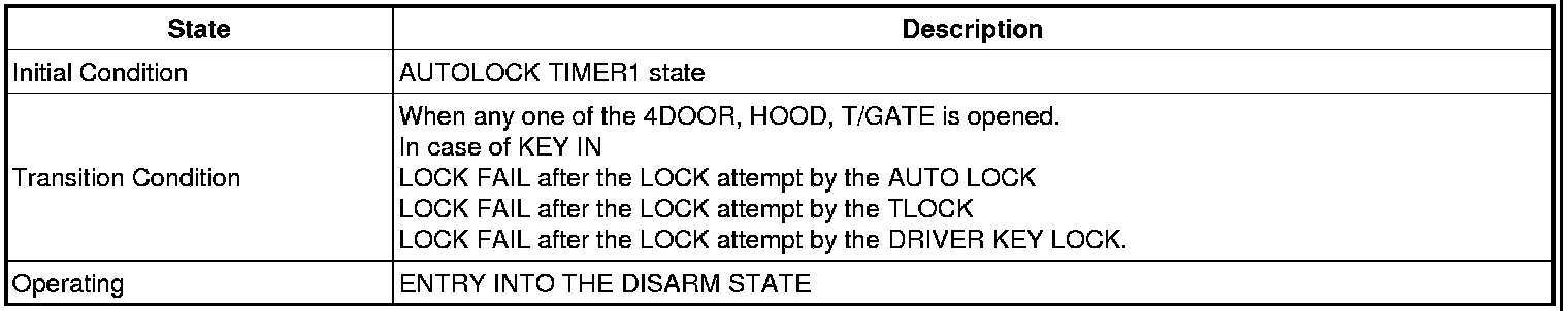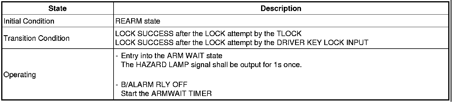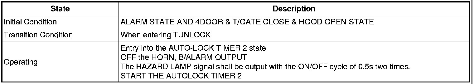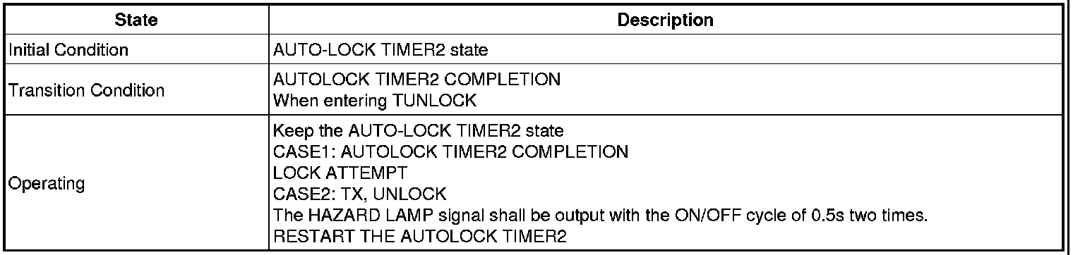 -> In state of ARM and ARMWAIT, When entering AUTOLOCK TIMER3 by T/GATE, if HAZARD LAMP output come into conflict with "T/GATE RELEASE FUNCTION", then HAZARD LAMP output control by T/GATE RELEASE function has priority