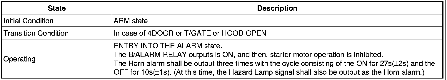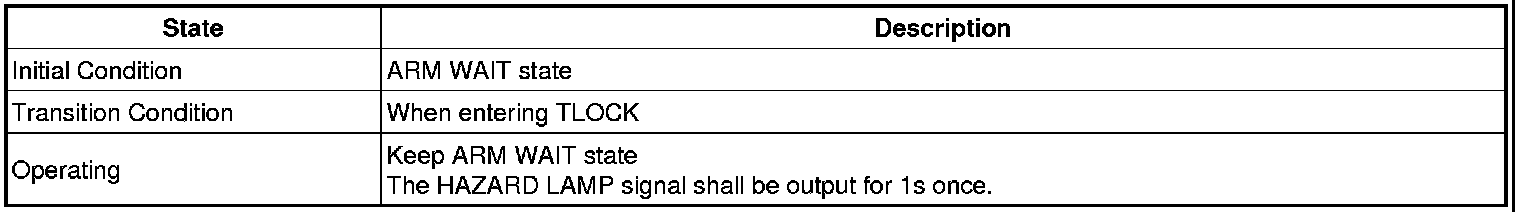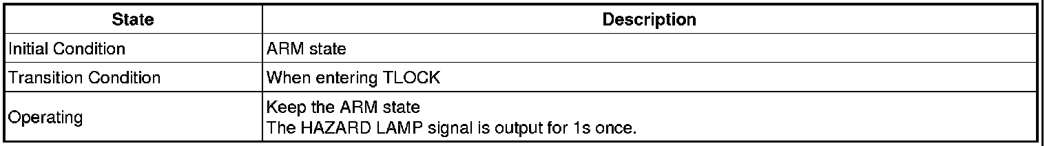 2. If the ARM state is maintained by the TLOCK within 4s after the TLOCK input in the ARM state, the HORN OUTPUT shall be gone side by side when the HAZARD alarm is operated.