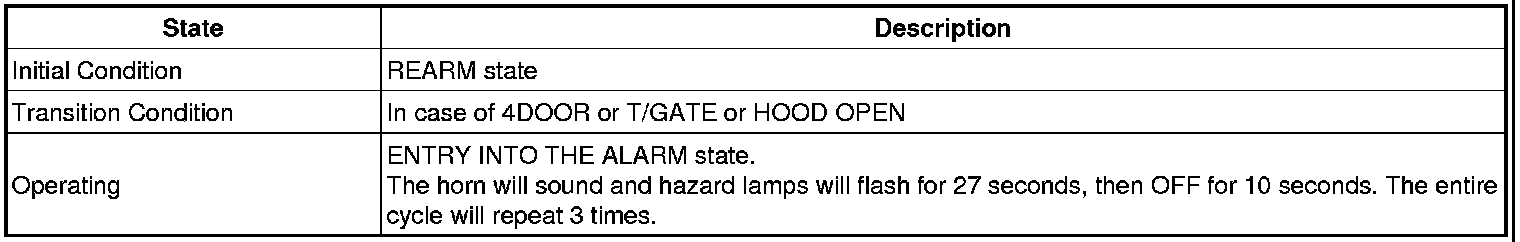 4. HORN and HAZARD running for B/ALARM is prior to PANIC ALARM, and HORN is not performed for 10 sec. free time of B/ALARM running.