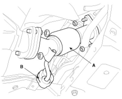 26. Install a jack and remove sub-frame(A) with the engine and transaxle assembly.
