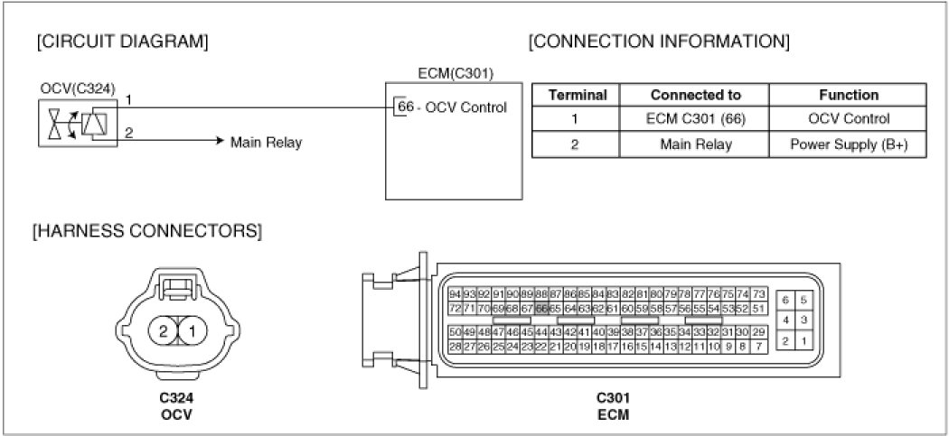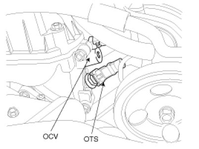 The Continuously Variable Valve Timing (CVVT) system controls the amount of valve overlap by varying the amount of oil flow into an assembly mounted on the intake camshaft through ECM control of an oil control valve. An Oil Temperature Sensor (OTS) is used to allow ECM monitoring of engine oil temperature. As oil is directed into the chambers of the CVVT assembly, the cam phase is changed to suit various performance and emissions requirements.