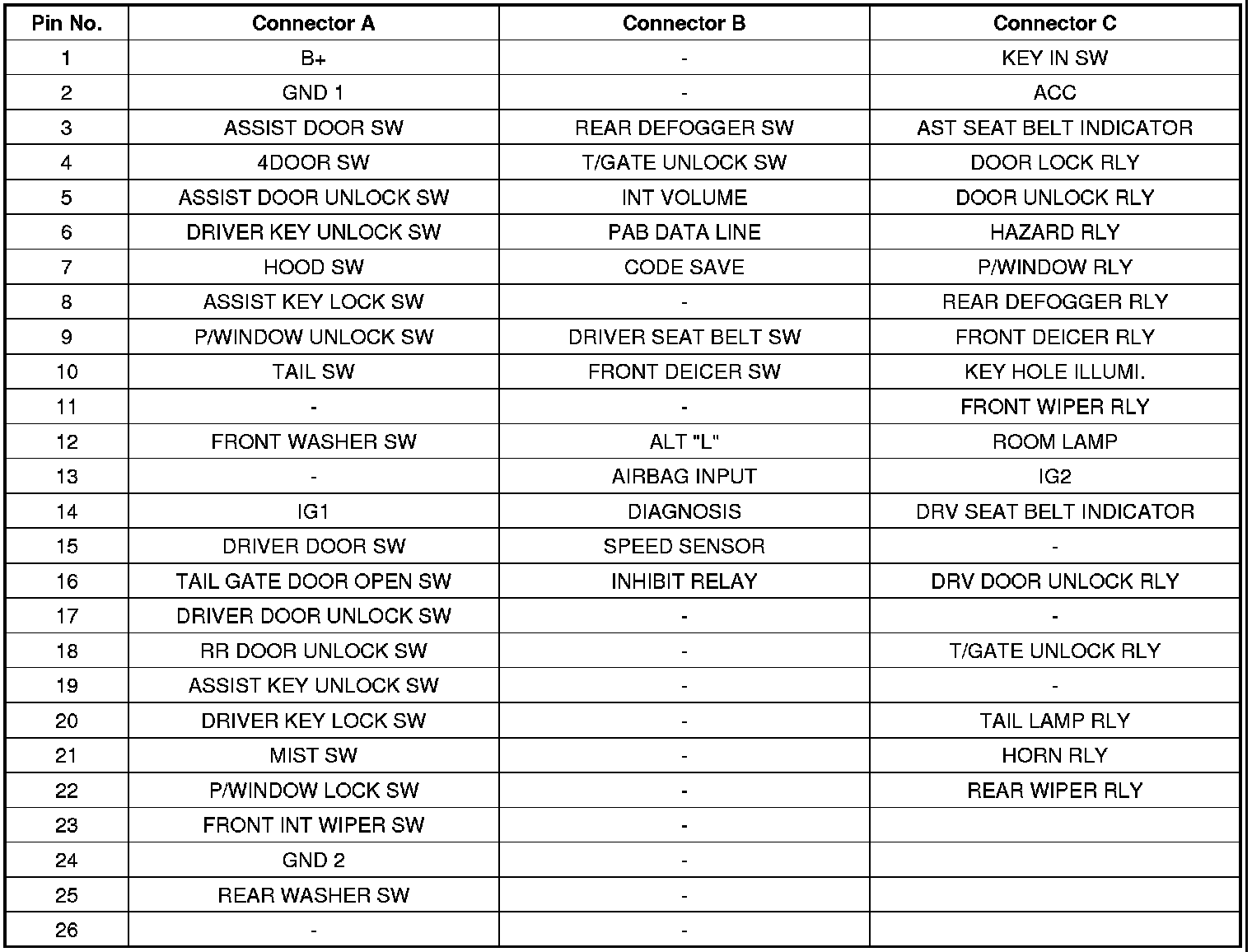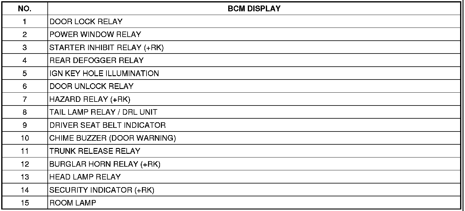 CONNECTOR CONFIGURATIONSBCM CONNECTORSBCM INPUT/OUTPUT SPECIFICATIONBCM ACTUATOR OPERATIONSCAN tool can operates all actuators controlled by BCM by force.