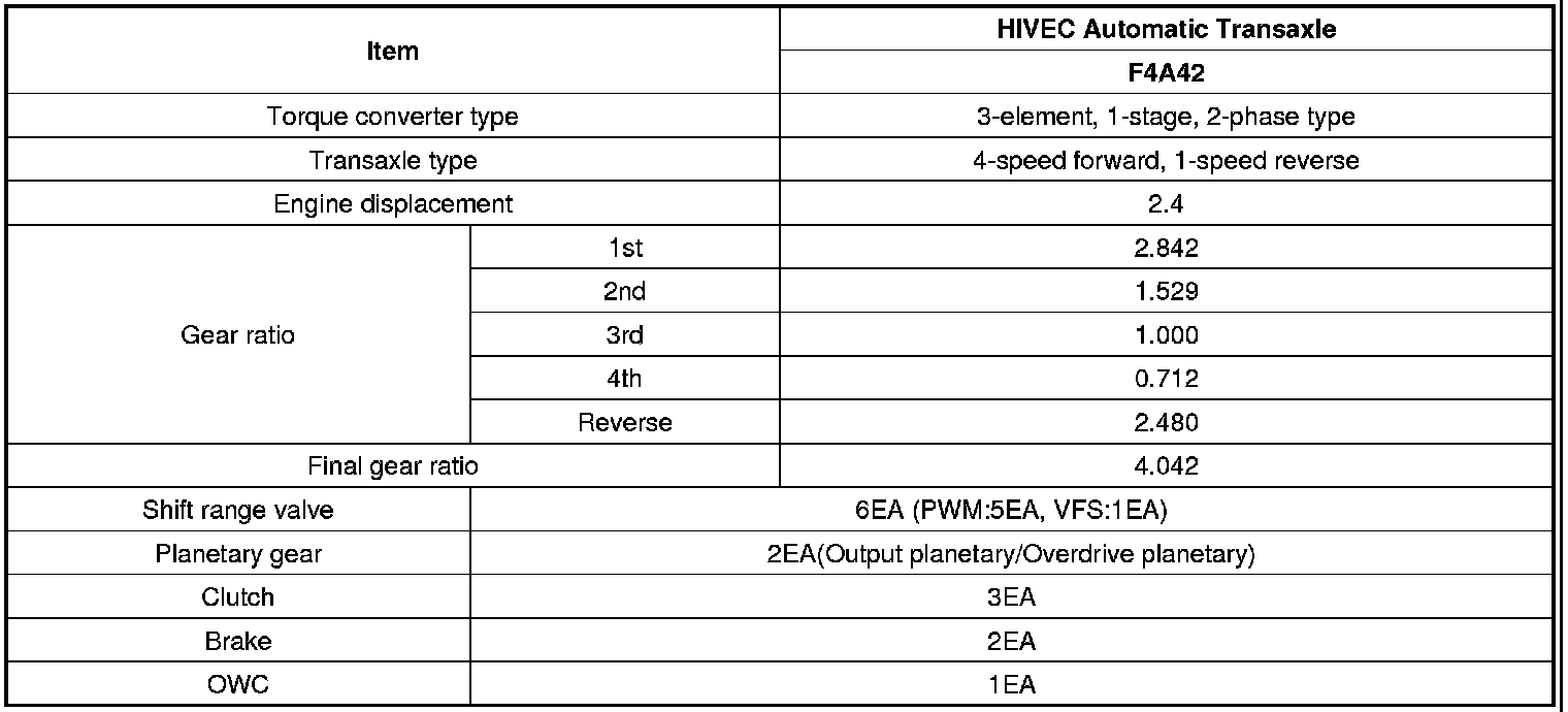 Specifications (F4A42)