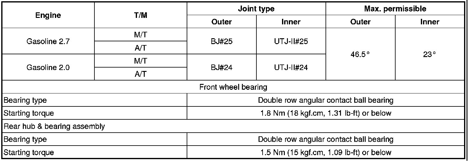 SPECIFICATIONDRIVESHAFT+BJ : Birfield Joint