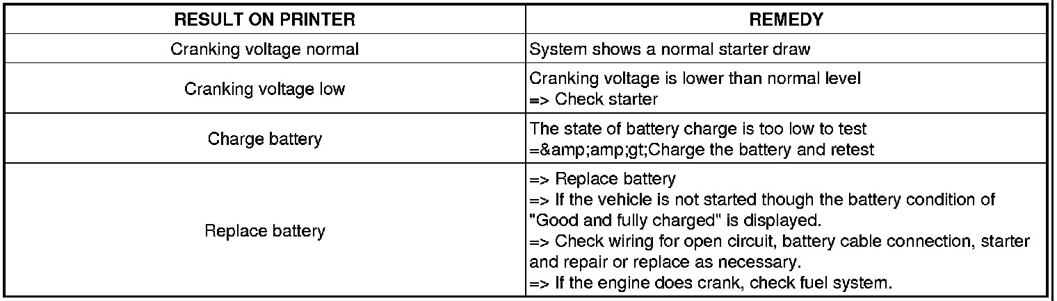 Take a relevant action according to the test results by referring to the starter test results as given below.
