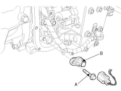 Remove the oil temperature sensor(B), loosening the mounting bolt(A).