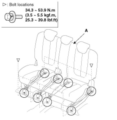 Loosen the mounting bolt, then remove the rear seat assembly (A).