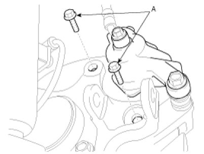 2. Install the carrier assembly (A) to the trailing arm, then tighten the mounting bolts.