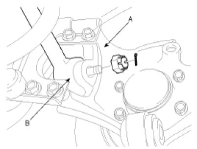 7. Disconnect the upper arm (B) from the carrier assembly after loosen the nut (A).