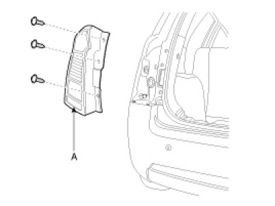 2. Loose the screws (3EA) holding the rear combination lamp then disconnect the connector then remove the outside rear combination lamp(A).