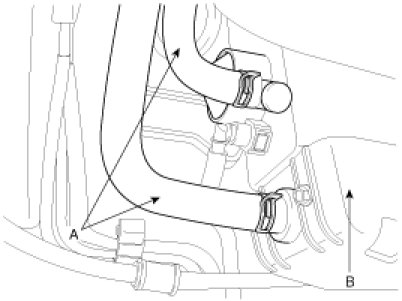 6. Disconnect the vacuum hoses (A) from the canister (B).