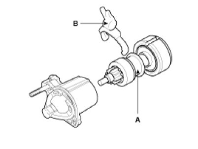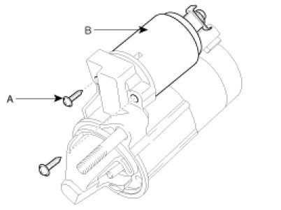 1. Disconnect the M-terminal (A) on the magnet switch assembly (B).