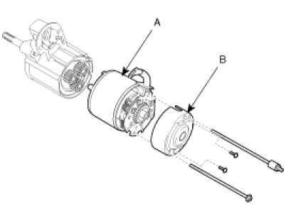 4. Remove the brush holder assembly (A), yoke (b) and armature (C).
