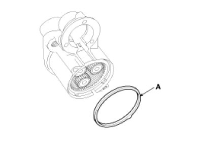 Using a suitable pulling tool (A), pull the overrunning clutch stop ring (B) over the stopper (C).