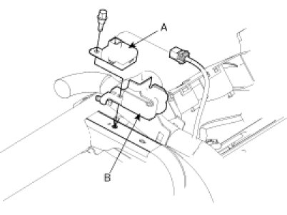 3. Disconnect the 5P connector of the SMARTRA unit and then remove the SMARTRA unit (A) with bracket (B) located on the cowl cross bar. after loosening the shear bolt.