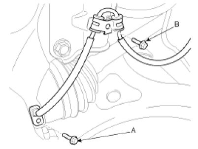 wheel speed sensor mounting bolt (A) and the wire bracket mounting bolt (B).