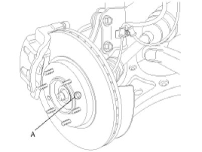 Remove the brake disc from hub using an M8 screw(A) if the brake disc has been seized with the hub due to corrosion or overheating.