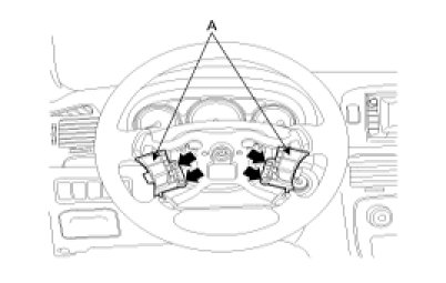 3. Disconnect the cruise control switch connector and then remove the cruise control switch(A) with two screws.