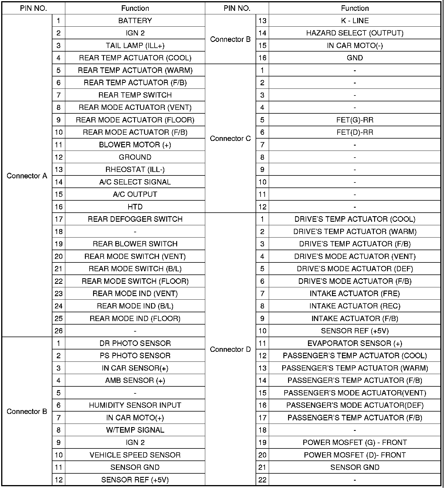 CONNECTOR PIN FUNCTION