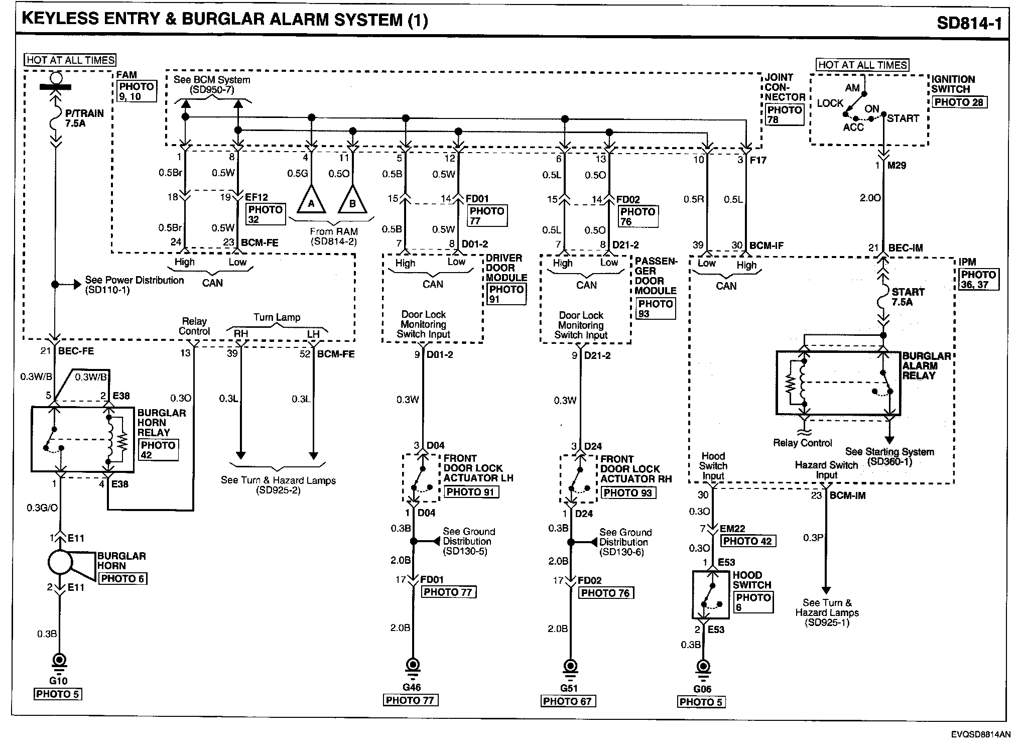 Locations: Location photographs (references to PHOTOS) referred to within these diagrams can be found via the photo number at the vehicle level under Locations by Photo Number. Component Locations