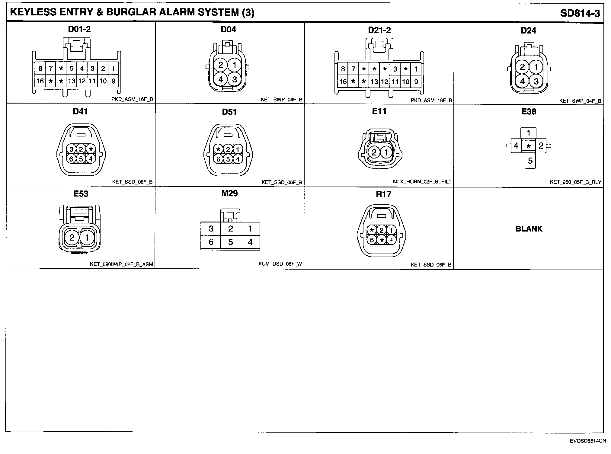 Keyless Entry & Burglar Alarm System Connector Pin Outs:
