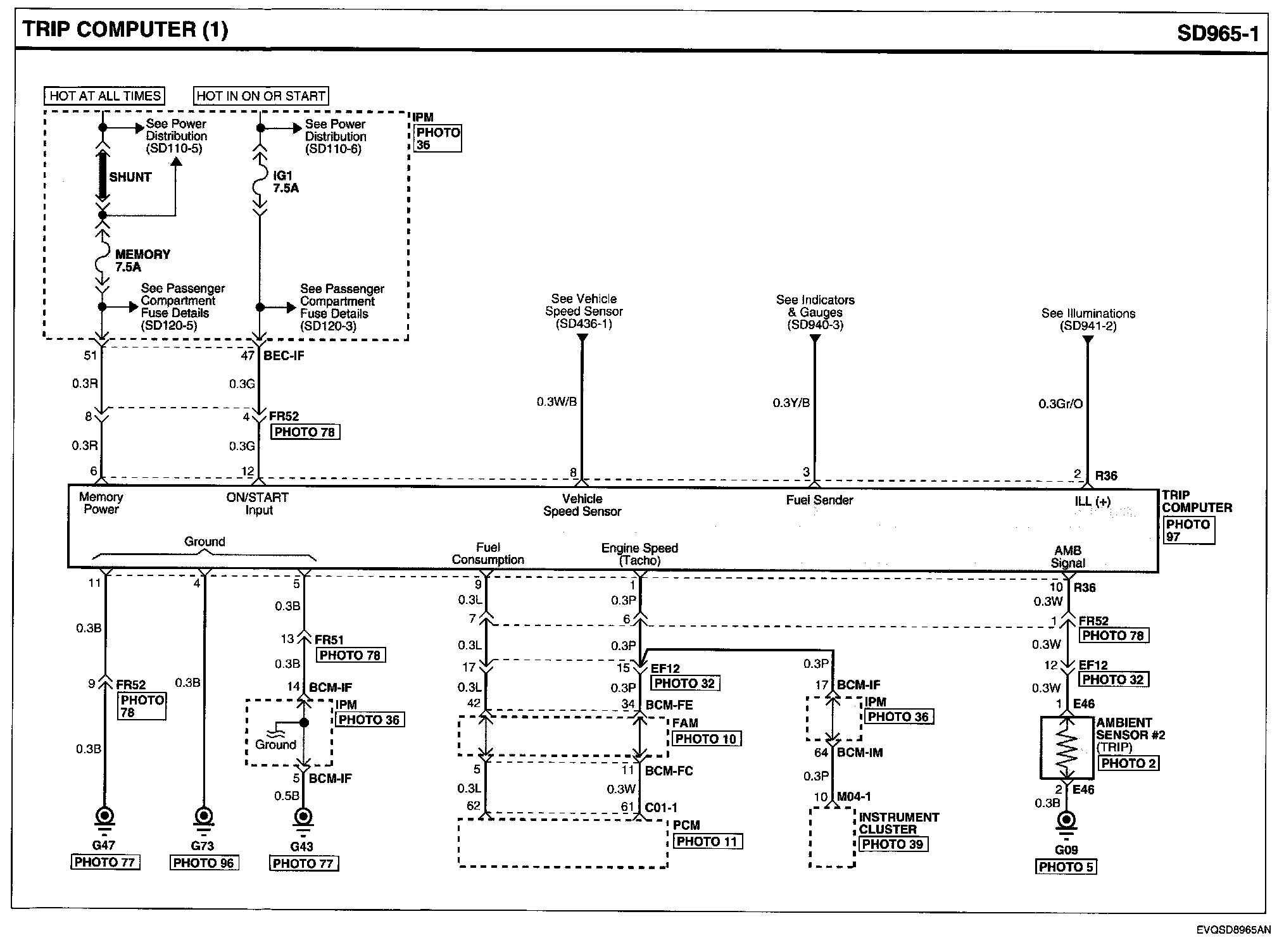 Locations: Location photographs (references to PHOTOS) referred to within these diagrams can be found via the photo number at the vehicle level under Locations by Photo Number. Component Locations