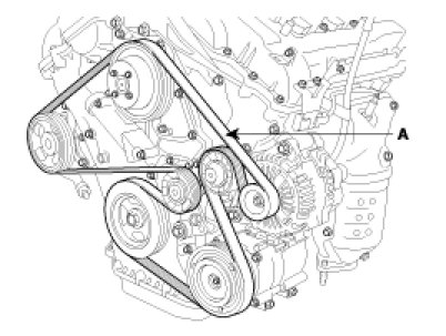 After putting belt on auto tensioner pulley, release the auto tensioner pulley slowly.
