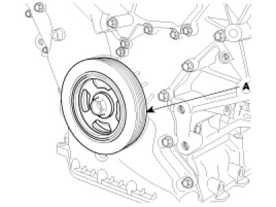 28. Using SST (09231-3C300) install the crankshaft damper pulley (A).