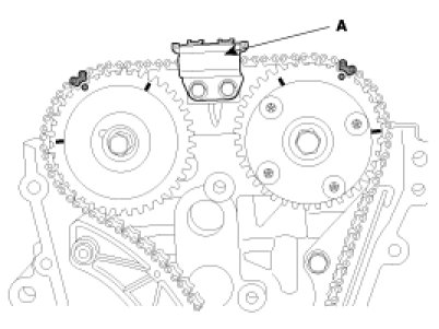 15. Install the RH timing chain auto tensioner (A).Tightening torque :