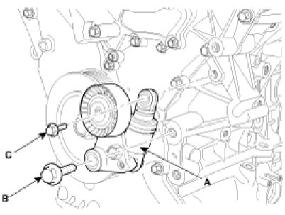 Rotate auto tensioner arm in the counterclockwise moving auto tensioner pulley bolt with wrench.