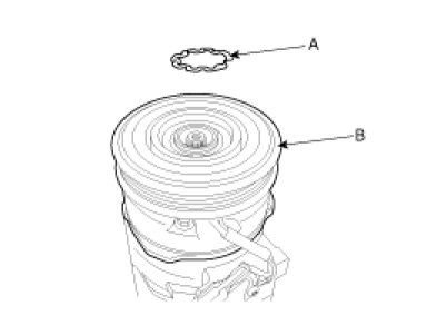 - Be careful not to damage the pulley (B) and compressor during removal/installation.