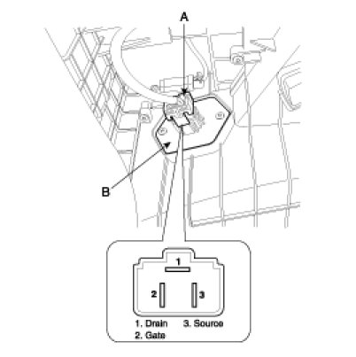 Disconnect the power MOSFET connector (A) at the connecting part between heater and blower unit.