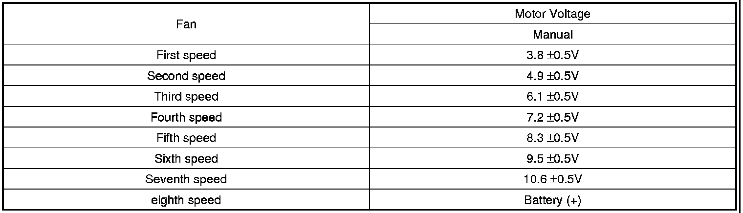 2. Manually operate the control switch and measure the voltage of blower motor between pin 1 and 2.