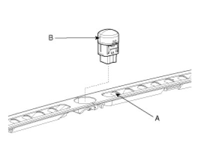 With a flat screw driver, remove the photo sensor (B) from the center of defrost nozzle (A).