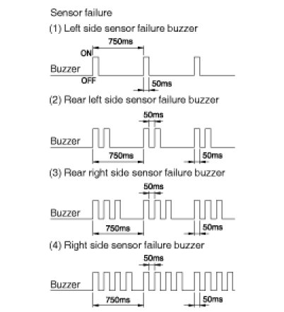D. Right side sensor failure : beep beep beep beep-beep beep beep beep-beep beep beep beep