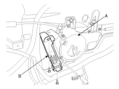 3. Remove the connectors and mounting bolts (2EA) from the power sliding door unit(A). And then remove the power sliding door control module (B).