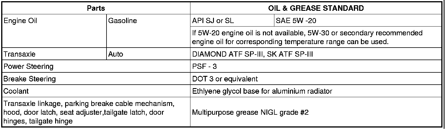 Using any other type of parts and fluid can cause serious damaged if the vehicle.RECOMMENDED LUBRICANTS