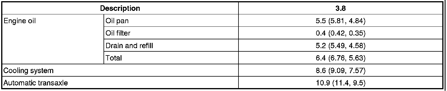 LUBRICANTS CAPACITIES