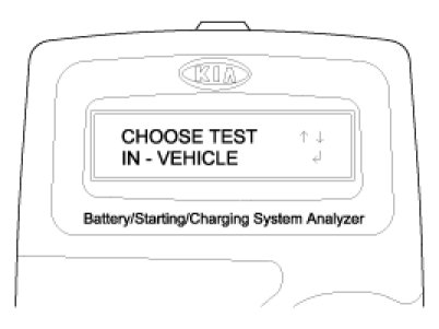2. The tester will ask if the battery is connected "IN A VEHICLE" or "OUT OF A VEHICLE". Make your selection by pressing the arrow buttons; then press ENTER.