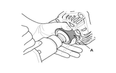 5. Remove the nut, pulley(A) and spacer.